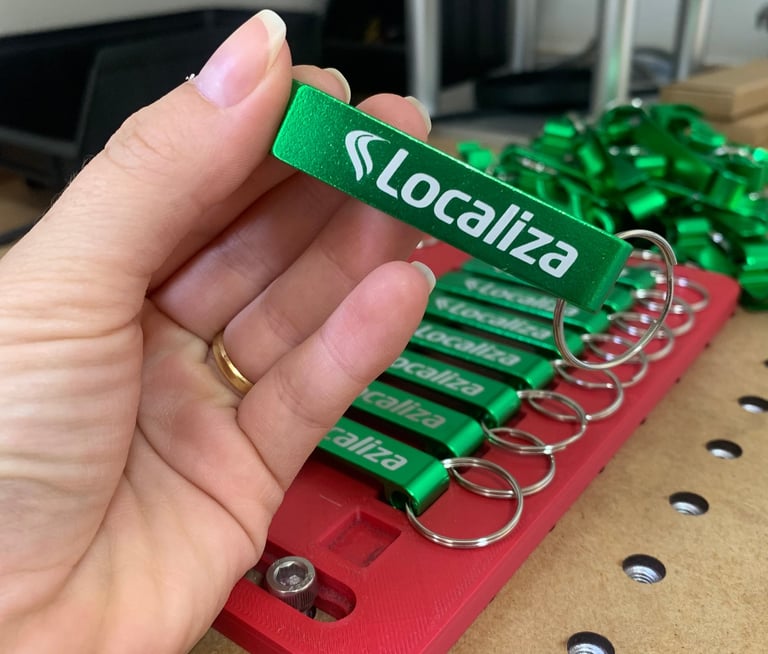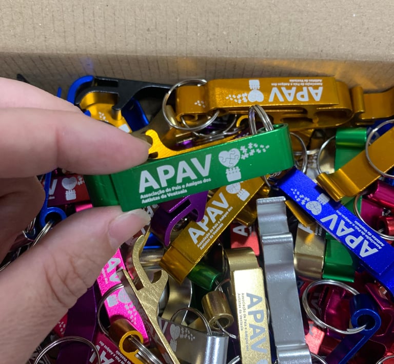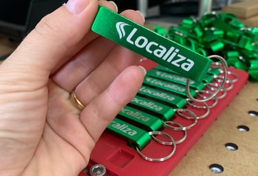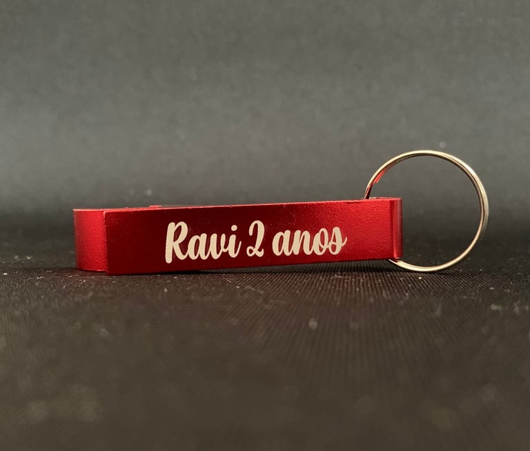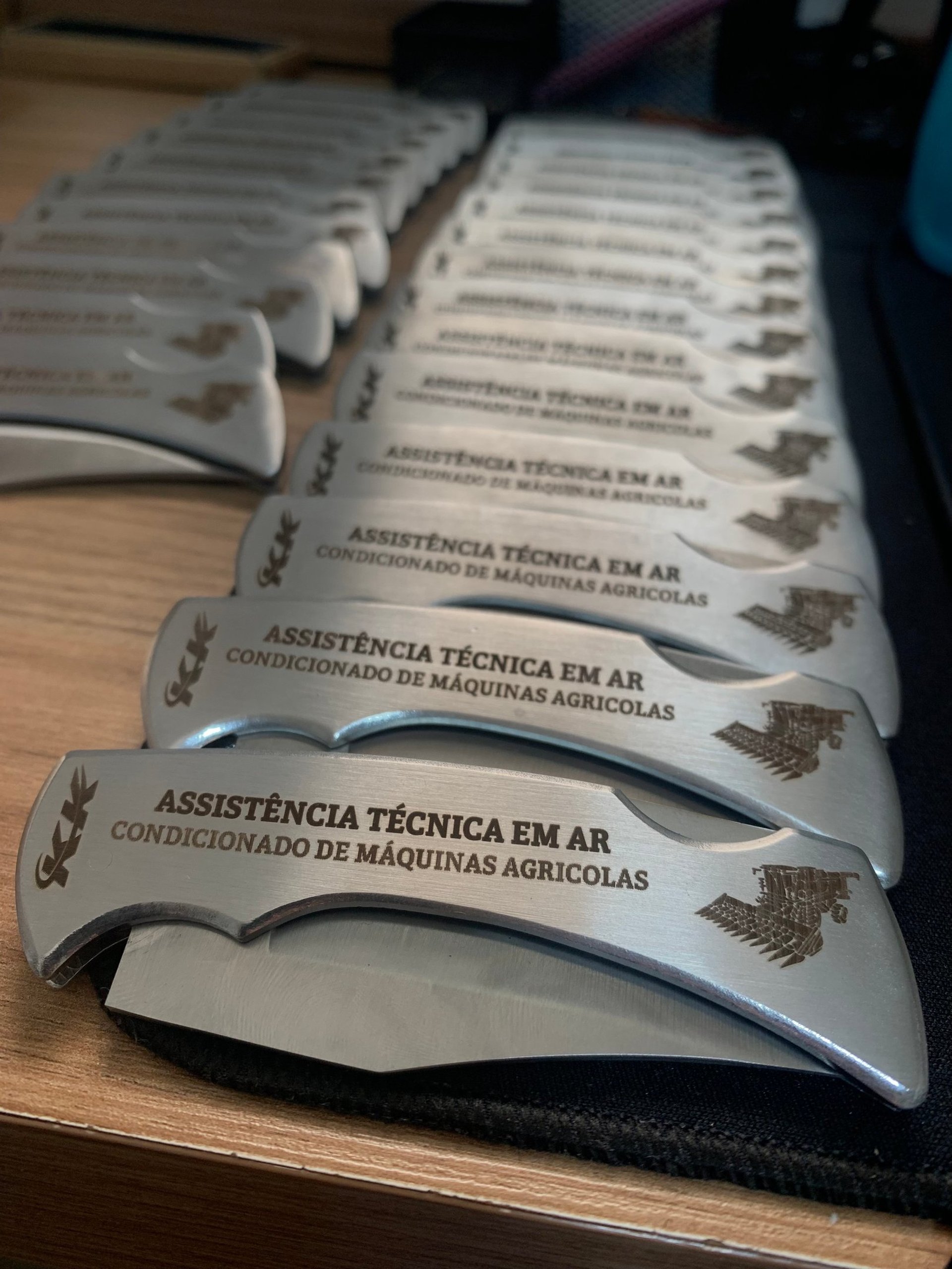 Personalize canivetes, cantis, chaveiros, abridores, pingentes e outros artigos em metal.