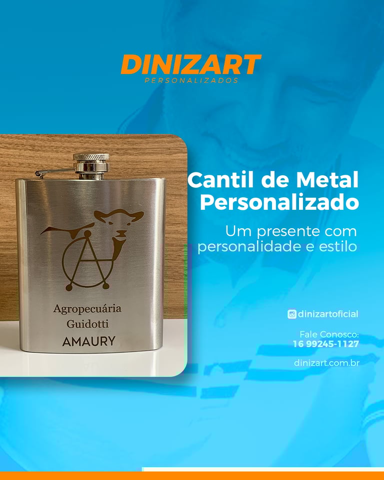 Quando o assunto é presentear com originalidade e bom gosto, os cantis personalizados da DinizART se destacam como uma escolha prática e sofisticada. Seja para ações corporativas, brindes especiais ou lembranças marcantes, esse é o tipo de produto que combina com qualquer ocasião e agrada diferentes públicos. Trabalhamos com três tamanhos de cantis em inox: 170ml, 200ml e 230ml — todos com acabamento de alta qualidade e gravação personalizada feita a laser. Para completar a experiência, oferecemos duas opções de embalagem: a caixa básica (ideal para uso direto ou ações promocionais) e a caixa especial para presentes (perfeita para surpreender com mais elegância). Quer impressionar com um brinde funcional, durável e com apresentação diferenciada? Fale agora com a DinizART pelo WhatsApp (16) 99245-1127 ou acesse www.dinizart.com.br e escolha o cantil ideal para representar sua marca ou presentear com estilo!