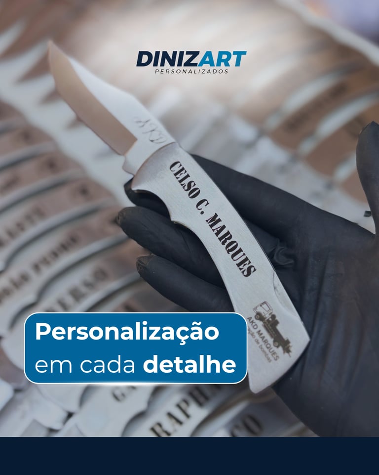 Presentear com identidade é o que torna um produto realmente especial. Os canivetes personalizados da Dinizart são mais do que um brinde — são um símbolo de respeito, cuidado e atenção com quem recebe. Seja para homenagear uma equipe, valorizar colaboradores ou surpreender clientes, cada peça é feita com nome e detalhes gravados com precisão a laser. Solicite agora sua personalização! Fale com a Dinizart pelo WhatsApp (16) 99245-1127 ou acesse www.dinizart.com.br e leve esse nível de exclusividade para o seu projeto.